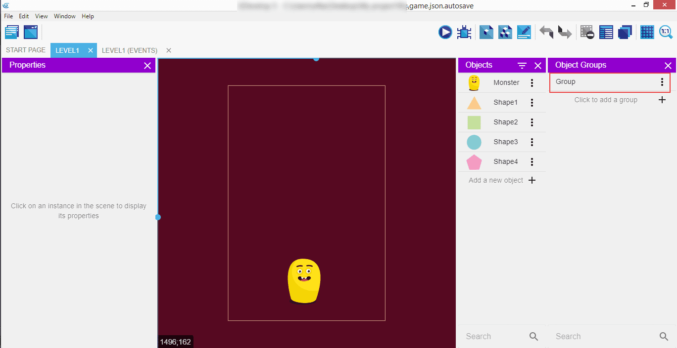 Remember to not add the Monster to that group, only the shapes.